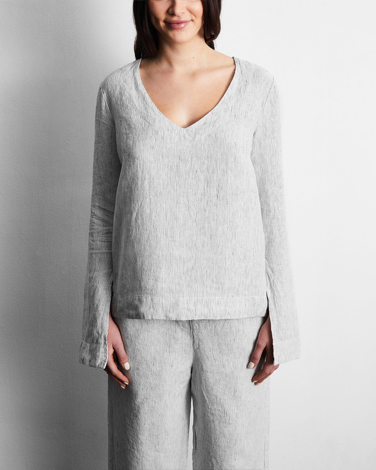 Pinstripe 100% French Flax Linen Top