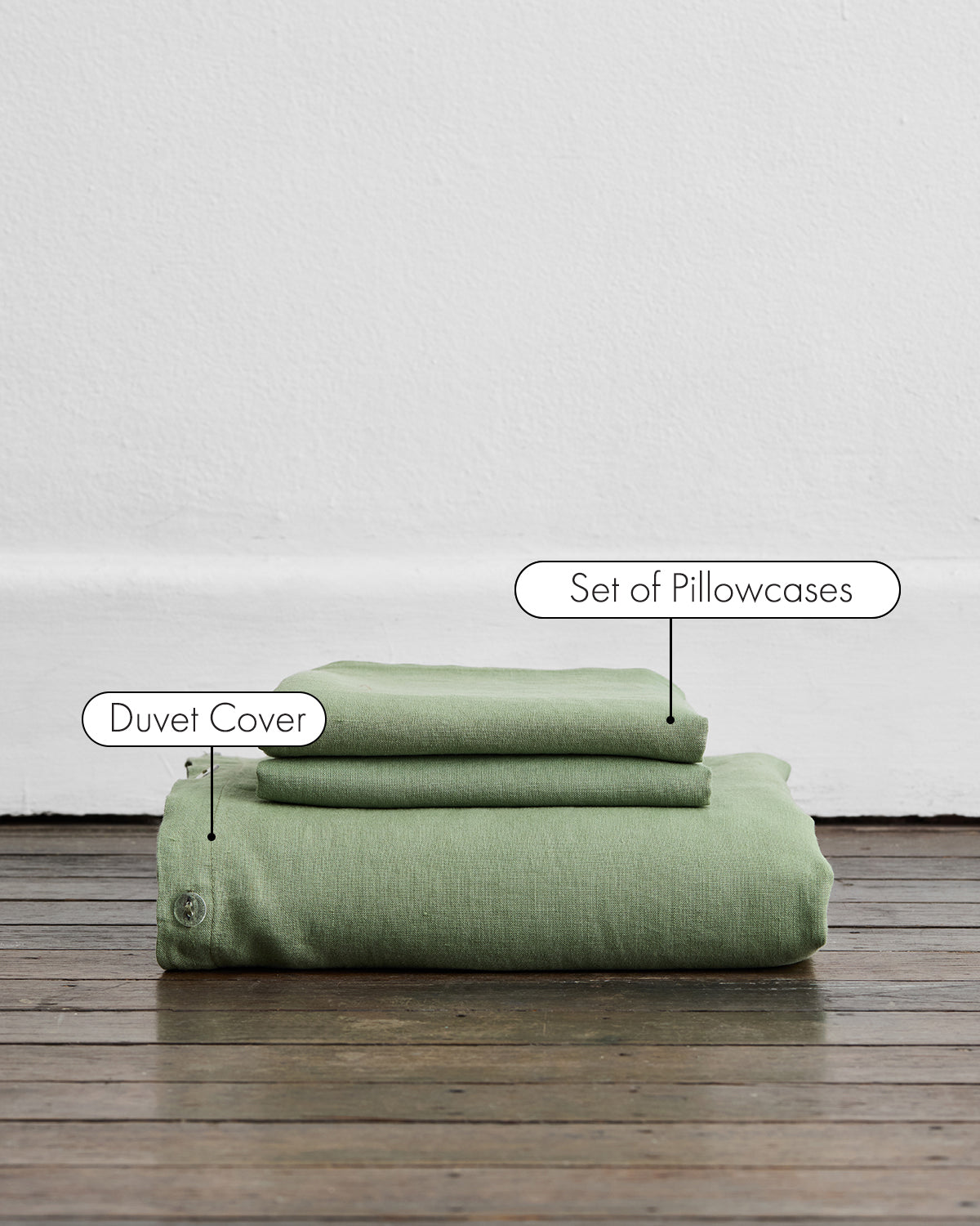 Tags: bedding, BundleProduct, Collection-bedroom-sets, Duvet Cover Sets, Flag: Save 5%, GMC_Band3, Green Bedding, linen-care-bedding, linen-duvet-cover-sets, LinenCupboard, Pistachio Bedding, upsell:Bedding, US_Bedding_PDP_Stories