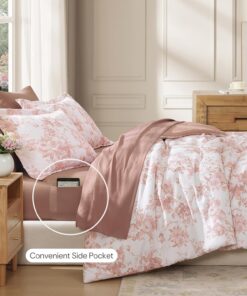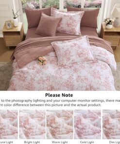 SKU: 10185484861715-queen-comforter-set-7-pieces-pink-floral-comforter-set-for-all-seasons-bed-in-a-bag-queen-with-botanical-flowers-comforter-sheets-pillowcases-shams-1 Categories: , ,