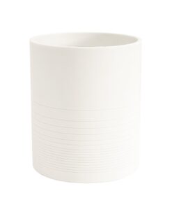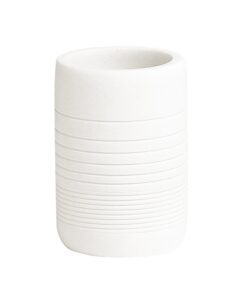Elevate your bathroom decor with these minimalist resin and sandstone bath accessories. Featuring clean lines and a smooth matte finish. this set combines durability with modern elegance. adding a refined touch to your daily routine. Perfect for a sleek. organized space. The Reverie collection consists of a lotion/soap dispenser. tumbler. vanity tray. wastebasket. and tissue box cover.