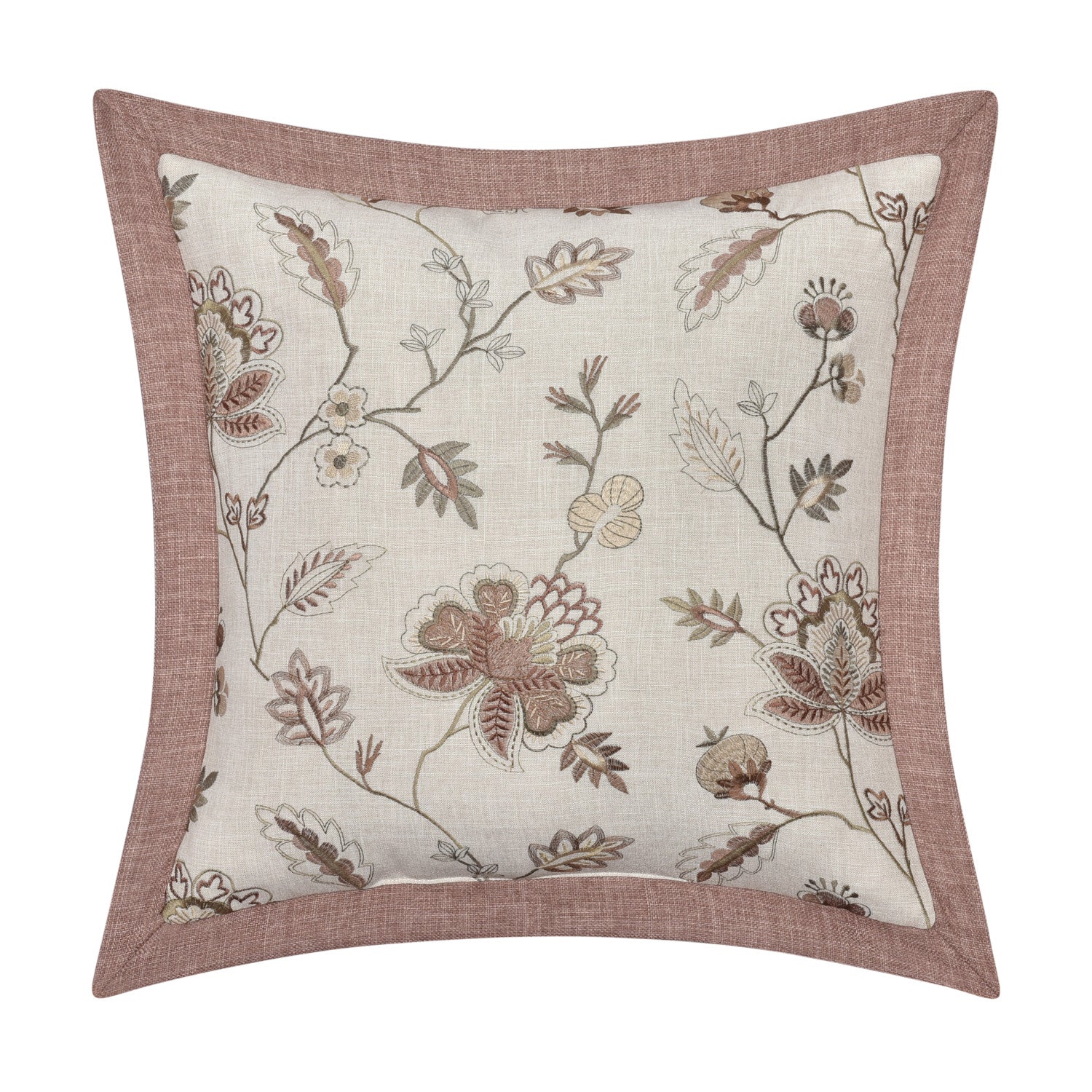 The Santa Rosa 20 Inch Throw Pillow features a beautiful all over floral embroidery on a textured faux linen base cloth. The embroidery is in blush. dusty sage. and soft cream tones. creating a harvest feel. The edge of the pillow is finished with a 1.5 folded flange on all four sides. Pair this pillow with the Santa Rosa bedding set to complete the look.