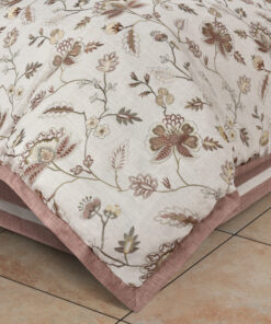 The Santa Rosa 4 Piece Comforter Set features a beautiful floral embroidery on a textured faux linen base fabric. The embroidery colorway creates a calming sense. as the blush. dusty sage. and soft cream tones intertwine harmoniously. The set includes 2 coordinate pillows shams. a split-corner bedskirt. and the comforter is finely finished with a folded flange in a dusty blush color accent. The Santa Rosa Coordinate Throw Pillows. Euro Shams. and Window Treatments are also available separately.