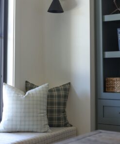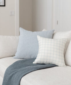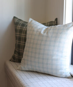 Elevate your decor with Scott pillow. A beautiful cream base with a blue grid design. This classic style brings sophistication and interest to any space.