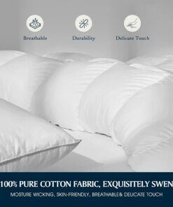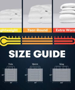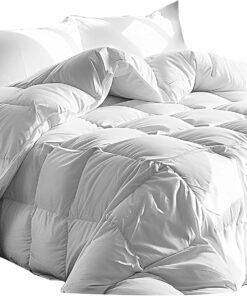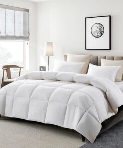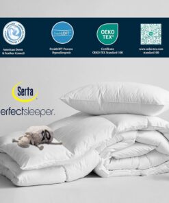 This Serta white goose feather and down fiber comforter is the perfect solution for warmth and comfort. The unique fill gives you the look and feel of an all down filled comforter for a fraction of the cost. The extra warmth fill weight is perfect for colder climates or if you like to keep your thermostat a little on the cooler side for energy savings. You’ll love the look and feel of the 233-thread count, breathable 100% cotton cover. The end to end sewn through box quilting ensures that the white goose fiber doesn’t shift, so you’ll never have any cold spots on the bed.