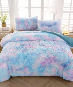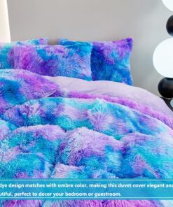 SKU: 10185486369043-sucses-blue-purple-fluffy-twin-bedding-sets-for-girls-3pcs-faux-fur-plush-shaggy-kids-duvet-cover-set-twin-size-tie-dye-velvet-furry-comforter-cover-set Category: