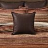 The Sundance 18 Inch Pillow features a wavy embroidered stripe pattern in tones of rust. brown. orange and wheat on faux leather fabric. The abstract embellished accent pillow is finished with a self-fabric cord and adds a unique charm to your decor. Pair this pillow with the Sundance bedding and window treatments to complete the ensemble.