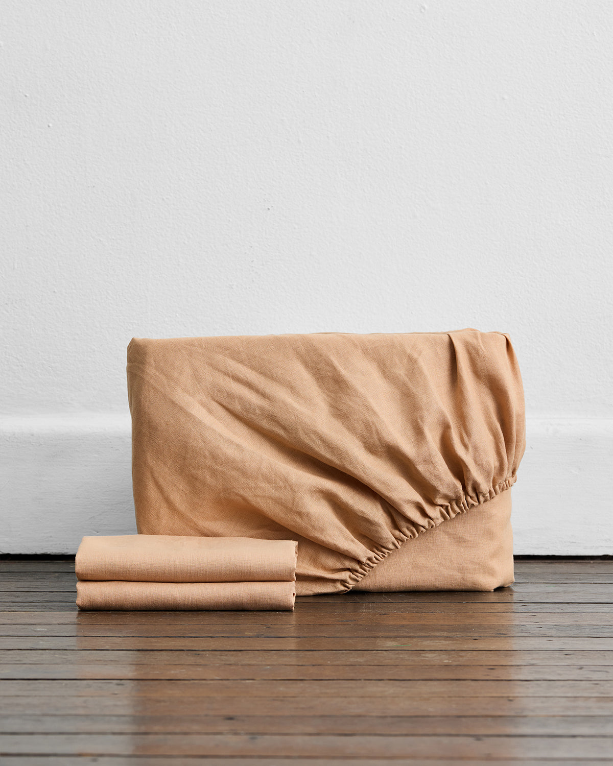 A beautifully made bed starts with our Fitted Sheet Set. including a fitted sheet and two matching pillowcases. Whether your most-used bedding essentials need a refresh. or your linen collection is just beginning. our Fitted Sheet Sets are the perfect way to get acquainted with our buttery soft 100% French flax linen. Incredibly durable with the luxurious feel linen is renowned for. our Fitted Sheet Set is the modern classic for your linen cupboard.