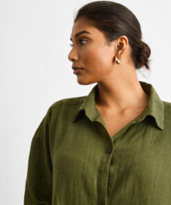 Be the first to review “Villa Linen Shirt Dress in Olive” Cancel reply