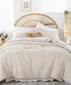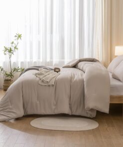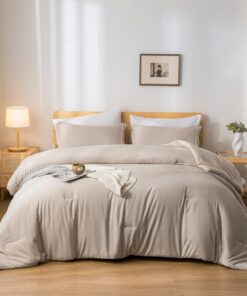 The fluffy Oatmeal comforter set features tightly woven and double soft microfiber contributing to a silky soft feel, lightweight, and breathable.