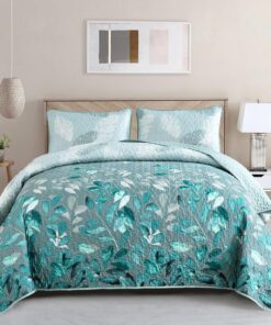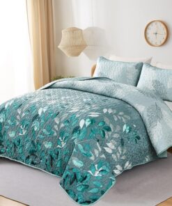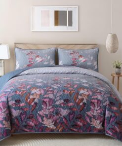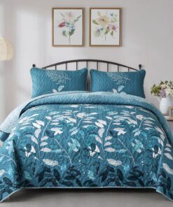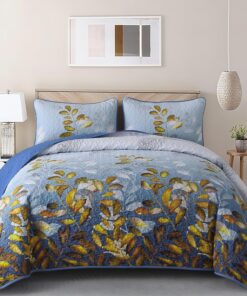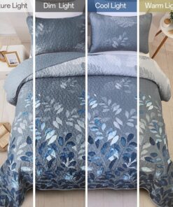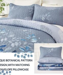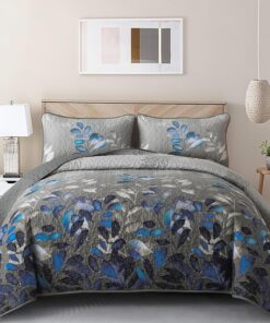 SKU: 10185505112339-wongs-bedding-blue-quilt-set-king-size-3-pieces-navy-blue-floral-bedspread-coverlet-set-with-2-pillowcases-soft-microfiber-lightweight-grayish-blue-gradient-floral-bedding-set-104-90 Category: