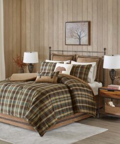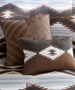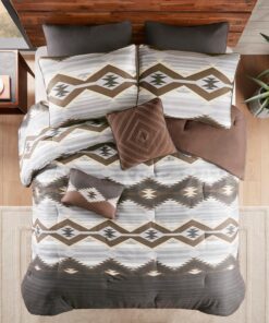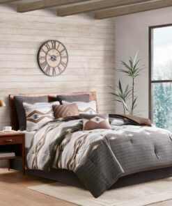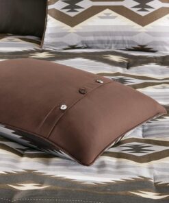 The Woolrich Simons Oversized 8 Piece oversized comforter Set offers a cozy cottage update to your bedroom decor. Featuring a southwestern print in grey and brown hues, this oversized comforter is accented by a solid border near the foot of the bed and a solid brown reverse. It’s also overfilled and oversized, for exceptional warmth and comfort. Two matching shams, two decorative pillows, two Euro shams, and a solid bed skirt provide the finishing touches to the bedding set. This oversized comforter is machine washable for easy care.