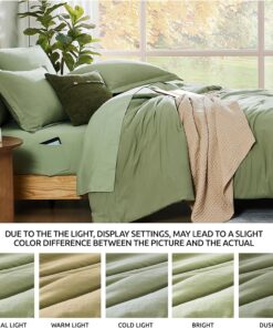 WRENSONGE Queen Comforter Set – 7 Pieces Sage Green Soft Bed in a Bag Queen with Fitted Sheet, Flat Sheet, 2 Pillow Shams, and 2 Pillowcases- Warm Bedding Sets Queen for All Season